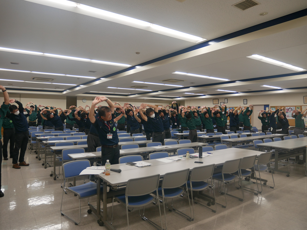 今回は、一般社団法人松商サポートより健康運動指導士の水野様をお招きし、腰痛や転倒災害といった労働災害の予防に焦点を当てた講話をしていただきました。