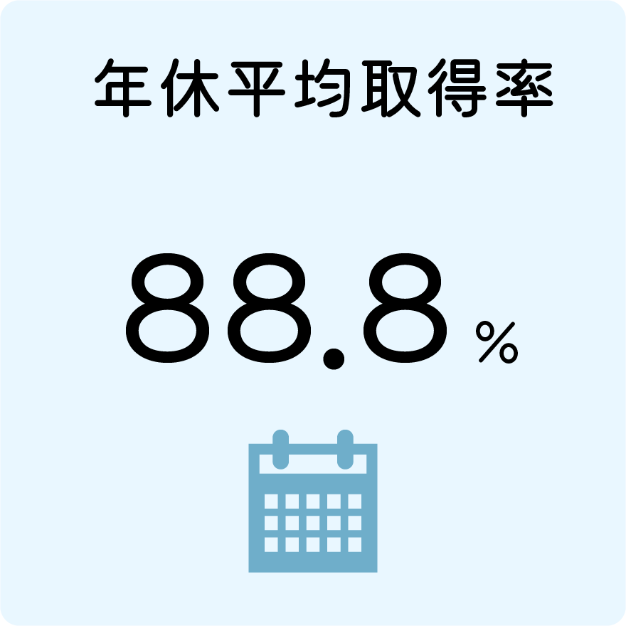 社員の年休取得率。定められた休日数の8割以上を取得、消化しています。