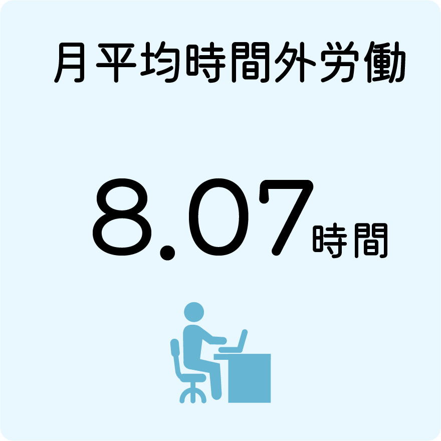 当社の月平均時間外労働(残業時間)は8.07時間。単純計算で1日あたり30分未満です。